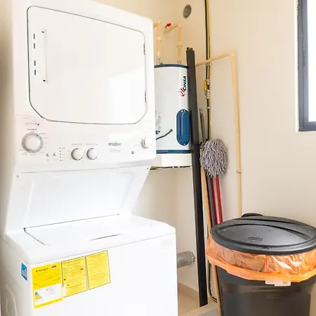 Departamento Lirios Residencial Para 5 Alberca apartment offers a balcony, a sitting area, and a living room, as well as comforts like climate control and a washing machine. The accommodation features a bathroom with dryers, free toiletries, and bath sheets. Furthermore, a separate toilet is available.