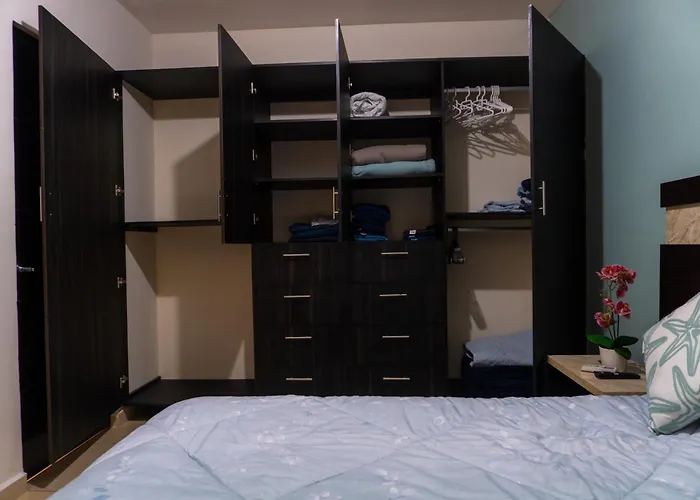 Within Departamento Lirios Residencial Para 5 Alberca apartment, there is a fully-equipped kitchen where guests can prepare their own homemade meals. Cancun airport is nestled 5 km from the 80 m² apartment. Guests are welcome in a private garden at the apartment.